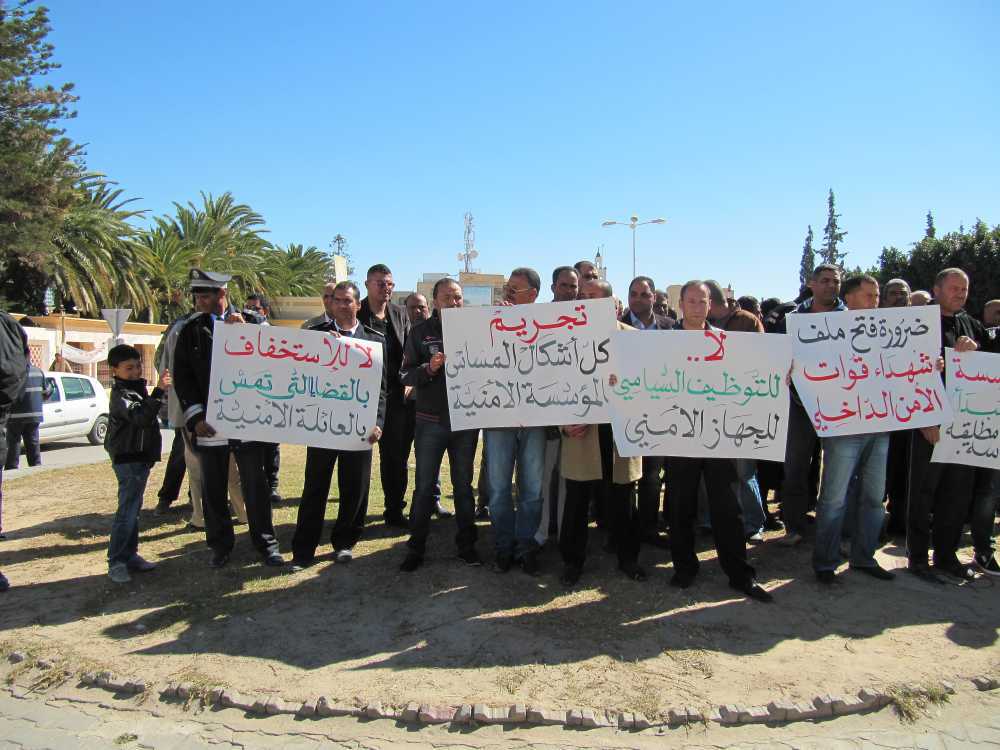 Mi avvicino, leggo un po’ gli striscioni poi faccio qualche domanda. Un agente in divisa blu notte, recita come a scuola in buon arabo classico: “Oggi siamo qua per protestare contro le condizioni in cui siamo costretti a lavorare. Contro la mancanza di sicurezza e la mancanza di rispetto. Nei giorni scorsi vari nostri colleghi sono stati aggrediti, alcuni sono morti. Le forze dell’ordine, la polizia, la gendarmeria non possono portare sicurezza al cittadino se loro non sono in sicurezza.” fine della recitazione. (vedere il video)