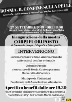 Torino. il 27 settembre 2019, presso la sede storica dell’Alma Mater, è stato organizzato un incontro, “Bosnia il confine sulla pelle”, sulla così detta “Rotta balcanica”. Lorena Fornasir, Gian Andrea Franchi e Gabriele Proglio ci hanno raccontato a voce l’orrore vissuto tutti i giorni dalle persone incastrate in questa prigione a cielo aperto che sono diventati i confini tra la Bosnia e la Croazia.